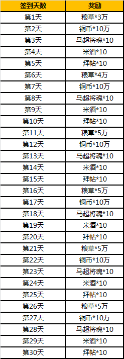【活动内容】开服之后,玩家每日登录都可领取丰富的奖励,直至累计登录30天,共可领取30次奖励~