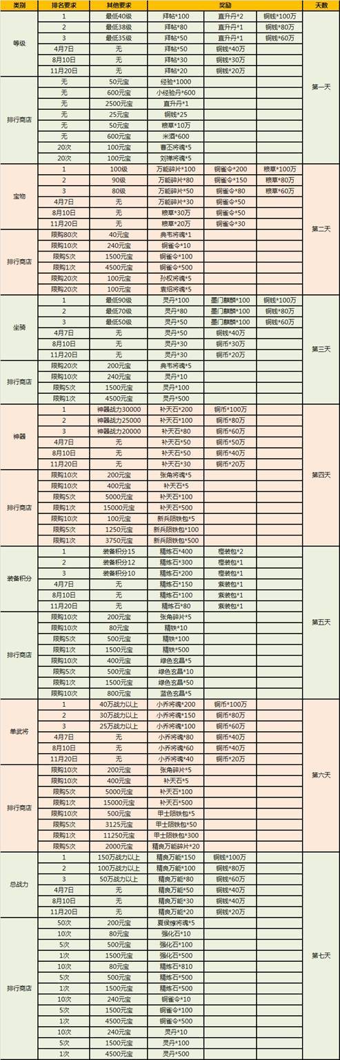 备注:如只满足排名要求,将会领取 无其他要求排名的相应奖励。