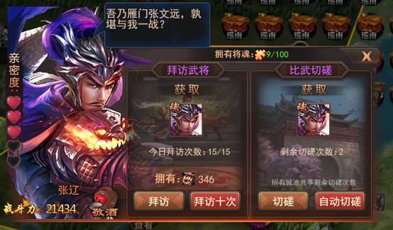 拜访需消耗拜帖,每次拜访均会获得1个对应武将将魂